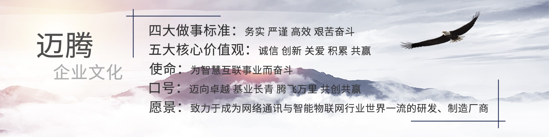 深圳市邁騰電子有限公司(簡稱邁騰),成立于2008年2月,是一家專注于網絡通訊與物聯網產品開發(fā)、生產、銷售及服務為一體的國家級高科技企業(yè)。目前是國、內外網絡通訊與物聯網行業(yè)前列的研發(fā)、制造廠商。